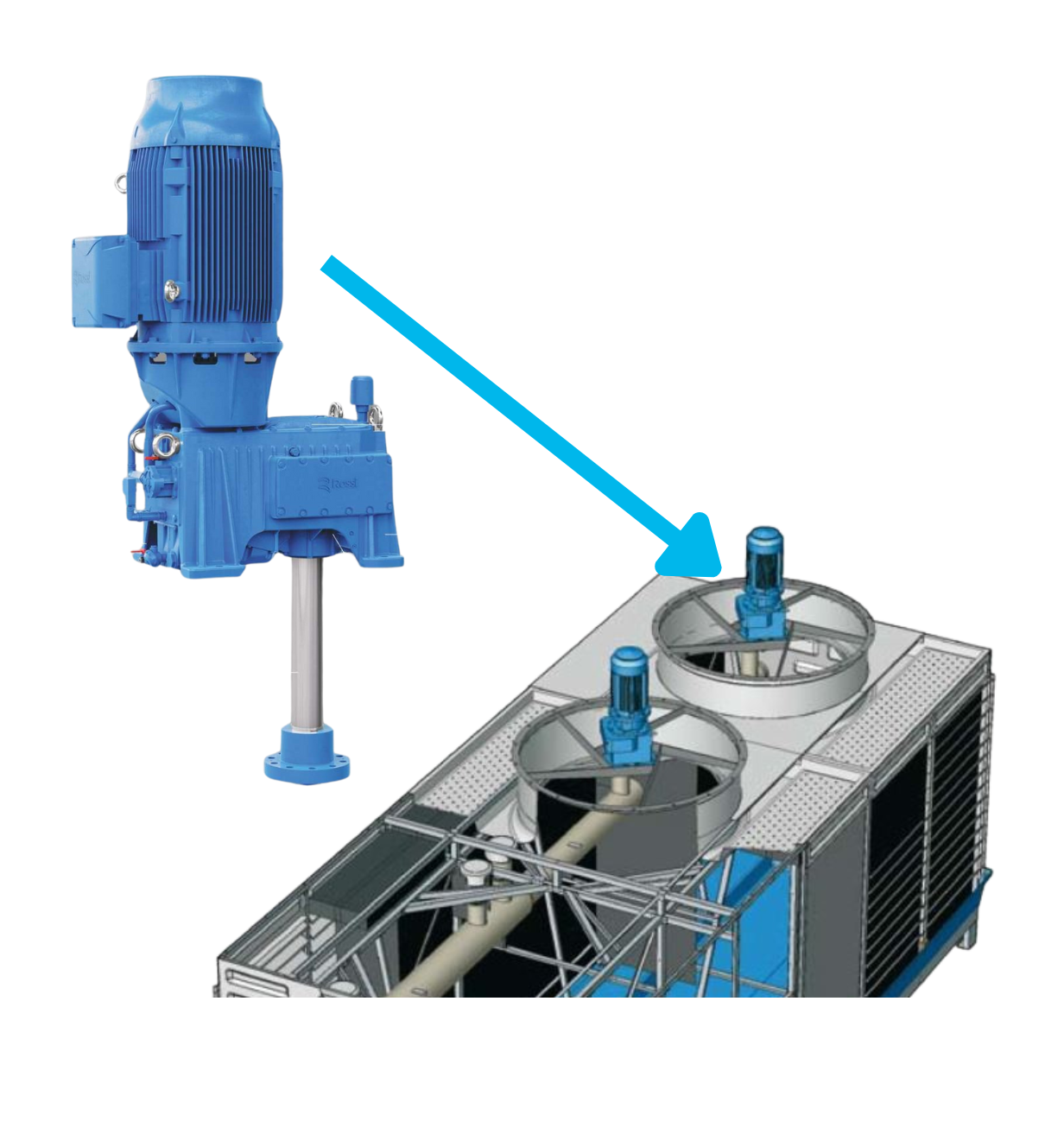 - This type of gear is designed to have more durability than the first two types of gear because the motor is installed outside the Cooling Towers upper structure (Stack) to prevent it from directly exposed to moisture and the Gear Reducer inside the cooling tower will be exposed to direct humidity. However, it will not affect the operation because it is specially designed to tolerate high humidity conditions which result in longer lifetime.