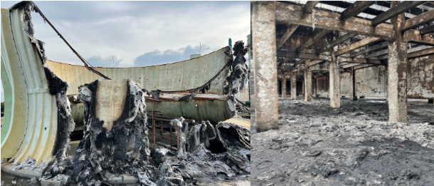 รูปความเสียหายของคูลลิ่งทาวเวอร์ที่เกิดเหตุไฟไหม้